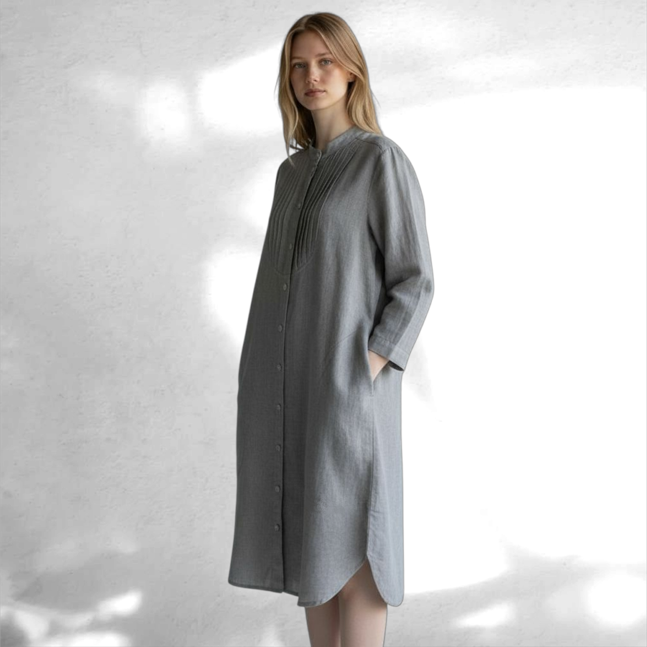 【受注生産】リネン混スタンドカラーワンピース